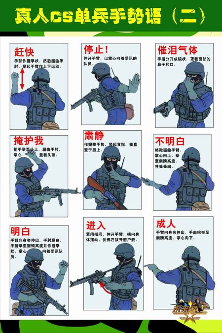 ★真人CS作战手语图示——未来战士特种作战最高境界★
